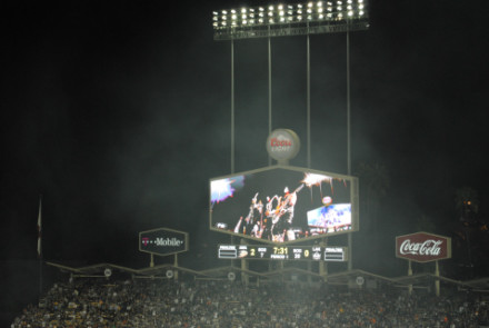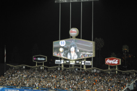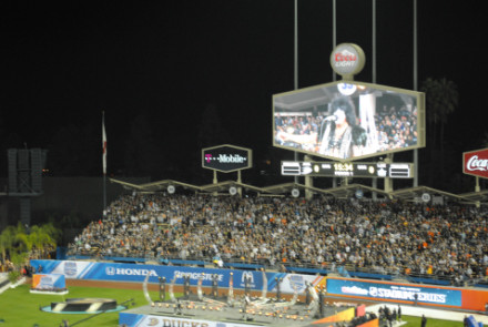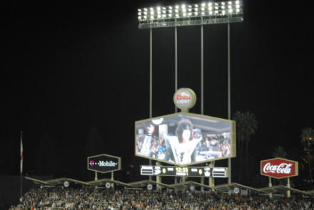 I learned that the gates would not open until 4:30 PM so sat down and made a few new friends while we waited. I was able to hear KISS doing the sound check for their show then at 4:30 PM, I was one of the first people to enter Dodger Stadium and bought a Dodger Dog and a Coca-Cola then went and found my seat, or so I thought.