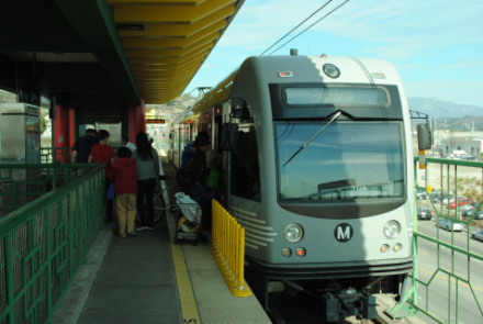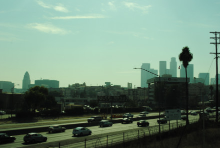 I detrained for the Gold Line at Chinatown and from here walked west on College Avenue for three blocks then turned right on Yates Street for two blocks to a walkway over the CA 110 Harbor Freeway.