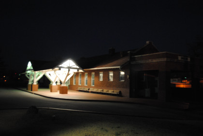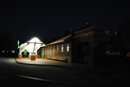 The Road to Sapulpa 2/22/2014It took 30 minutes at the Hertz Rental Car counter b14easternflyerore Dave could get our car after which l14easternflyert OKC Airport and made our way to the Interstate 44 Toll road which we took to Bristow but arrived there after dark. We found the old Frisco Railroad station and Dave stopped while I tried a little night photography here.