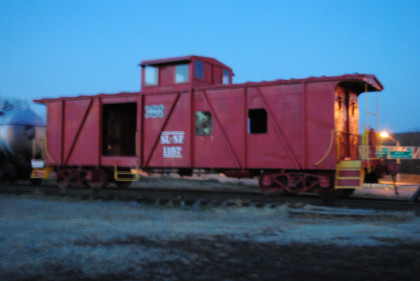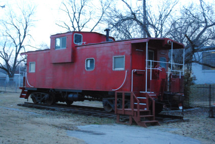 St. Louis-San Franciso caboose 1157 built by the railroad in 1938 as a boxcar and converted to a caboose in 1952. From here Dave and I drove back to the Super 8 to pick up Dwight then headed to the boarding site but made a few stops on the way to what we found last night on the way to the hotel.