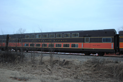 San Luis and Rio Grande dome-lounge 510, ex. Railroad Passenger Car Alliance 510 "Chulitna", exx. Auto Train 522, nee Santa Fe 510, built by Budd in 1954.