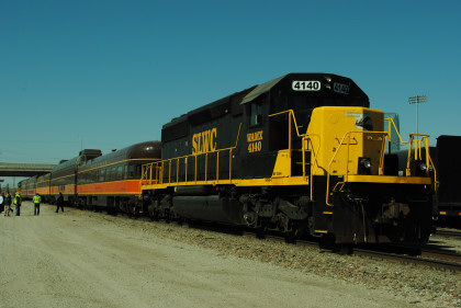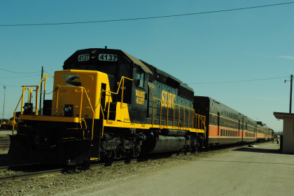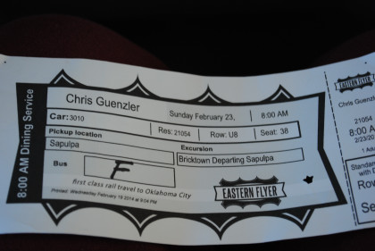 I decided to take this opportunity to ride the Eastern Flyer, a demonstration of a train from Sapulpa, Oklahoma to Oklahoma City. The Eastern Flyer was a proposed medium distance inter-city train travelling between Oklahoma City in central Oklahoma and Tulsa in northeastern Oklahoma. It was originally planned to be a private operation by the Iowa Pacific Railroad and its services were to have included a dome car, coaches and full meal service. This would have been the first regular passenger service to Tulsa since the Santa Fe discontinued service in 1971.