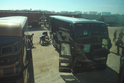 Nearing the unloading location. Once we crossed the old Rock Island Line we pulled into a siding to waiting buses.