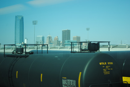 Downtown Oklahoma City came into view as we neared the yard and after arriving, we detrained for a few pictures.
