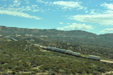 California Highway 138 certainly has curves. We then heard a train climing three percent grade south track.