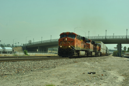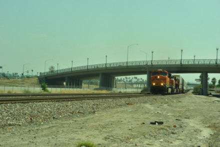 BNSF 7243 East along Cajon Boulevard in San Bernardino, after which we drove over to Pepper Street.