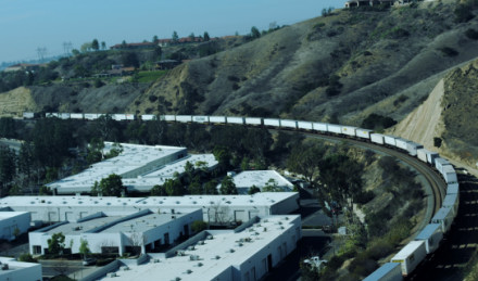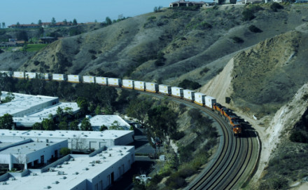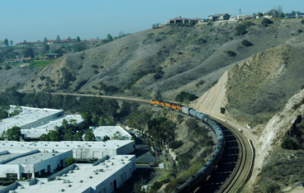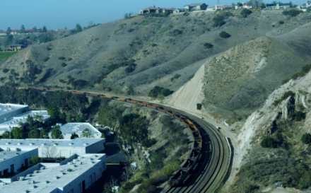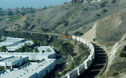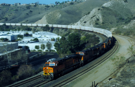 BNSF 6986 West, a baretable train, came next beneath my photo location and stopped.