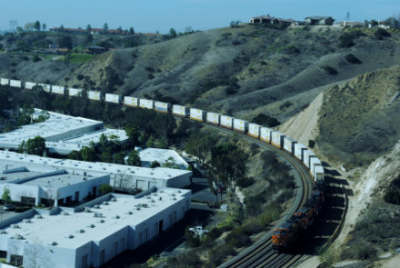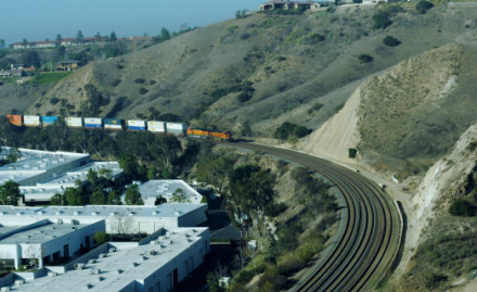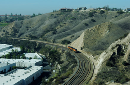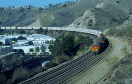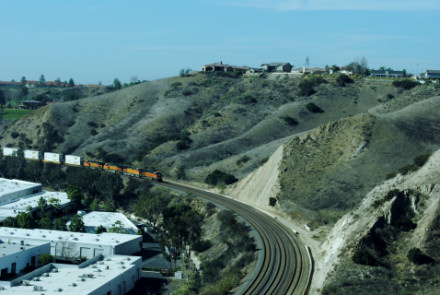 I arose and checked the status of Amtrak's Southwest Chief, learning that it was due into Riverside at 10:47 AM, over five hours late. I drove out to Horseshoe Bend and parked under the shade of the BNSF bridge then hiked up the bridle trail to my photo location. My wait for a train was not long.