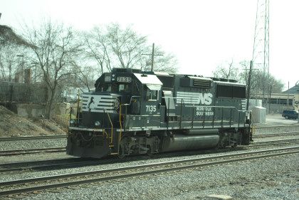 Norfolk Southern GP60 7135 built by Electro-Motive Division in 1991. The Wabash station in Mexico was torn down in 2013.