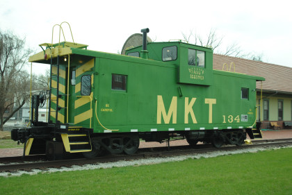 Missouri-Kansas-Texas caboose 134 built by International Car in 1969. We went back across the Missouri River on Missouri Highway 87 and went into New Franklin.