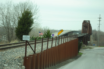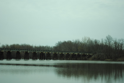 The Chicago and Alton bridge across the Missouri River in Glasgow, built in 1899 and was the world's first steel railroad bridge. It is currently used by Kansas City Southern. From here we took Missouri Highway 240 into Slater.