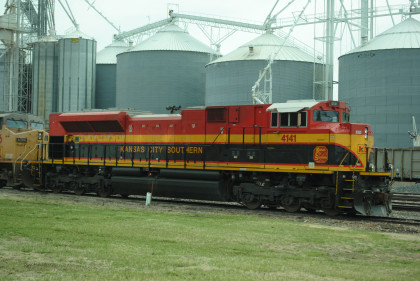 KCS SD70ACe 4141 built by Electro-Motive Division in 2014 at Slater. From here we took Missouri Highway 240 into Marshall.