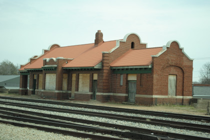 The former Chicago & Alton/Gulf Mobile & Ohio/Illinois Central Gulf/Gateway Western Railroad station which was formerly division offices for this line. The depot is currently owned and used by Kansas City Southern Railway.