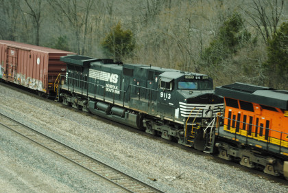 We were surprised to find Kansas City Southern SD40B 913, nee KCS SD40-2 683 built by Electro-Motive Division in 1978, which was re-built as an SD40B in 2011.