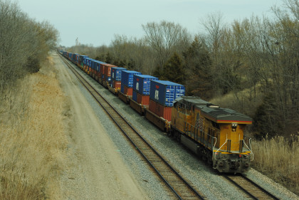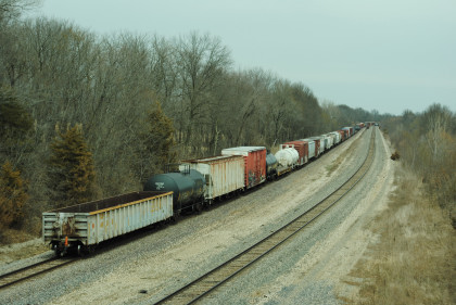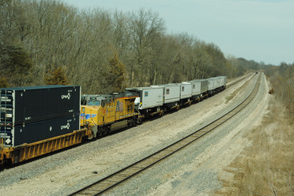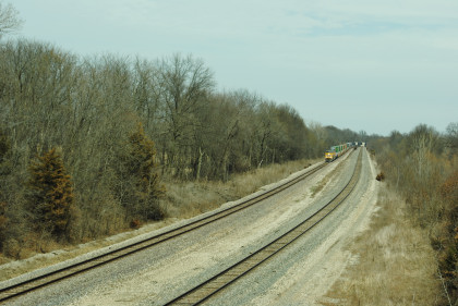 Union Pacific 8028 East at the first bridge west of Bosworth. Returning to Route UU, we drove that to Route M to County Road 351.