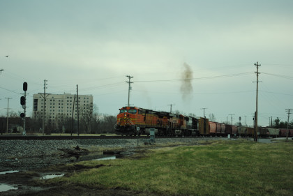 BNSF 5006 West came into town. We looked for the Chicago, Burlington and Quincy station but found it had been demolished between 2012 and April 2014.