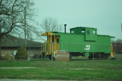 St. Louis-San Francisco caboose 1276 built by International Car in 1976, painted as Burlington Northern 11604, in Brookfield. We took US Highway 36 to Missouri Highway 139 to Sumner.