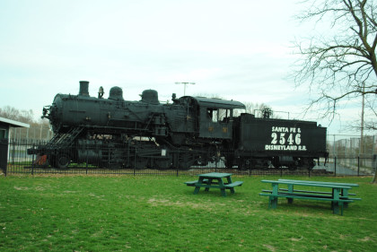 Santa Fe 2-8-0 2546 built by American Locomotive Company in 1911 for Kansas City, Mexico and Orient Railroad and sold to the Santa Fe in 1927. From here we took Missouri Highway 5 to US Highway 36, then Missouri Highway 139 north to Ethel, then Route F to Route J to Missouri Highway 3 to Missouri Highway 156 to Missouri Highway 3 to Missouri Highway 11 to US Highway 63 to Kirksville and Colton Steakhouse.