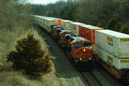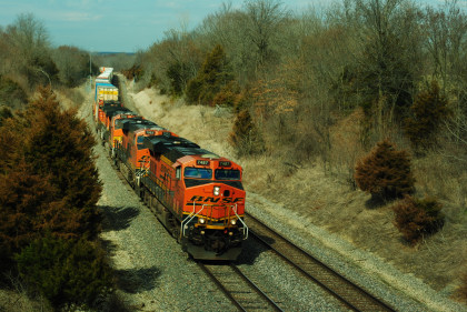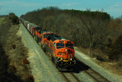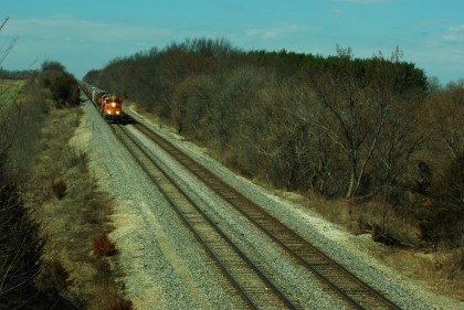 BNSF 5515 West. Then it was to the old bridge west of Rutledge.