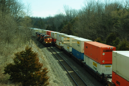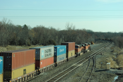BNSF 6988 West from Route C bridge in Revere. From here we went to the next bridge just west of our previous location.