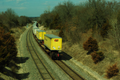 The BNSF had the north track out of service and a maintenance truck came down the closed mainline.
