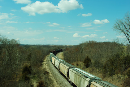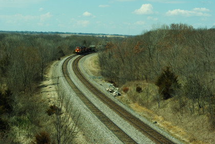 BNSF 7046 West. We then drove Route BB to where it ended, stayed straight to where it became a T-junction and then went south to the old bridge east of Wyaconda.