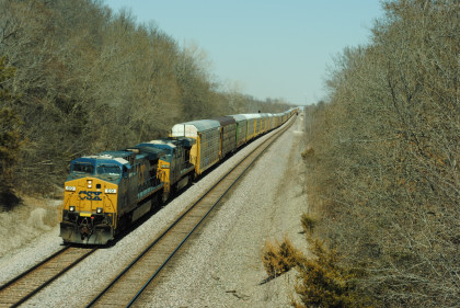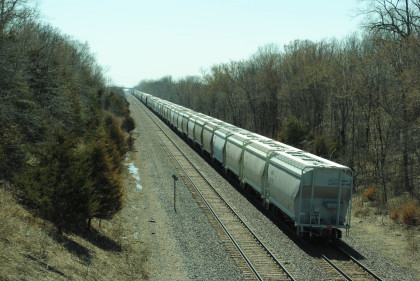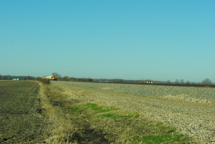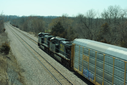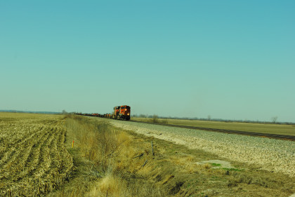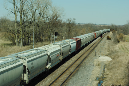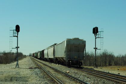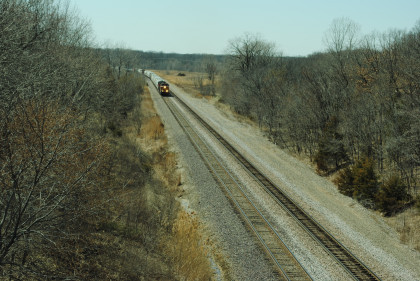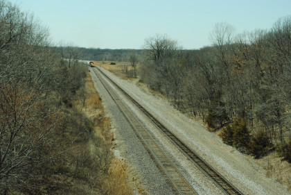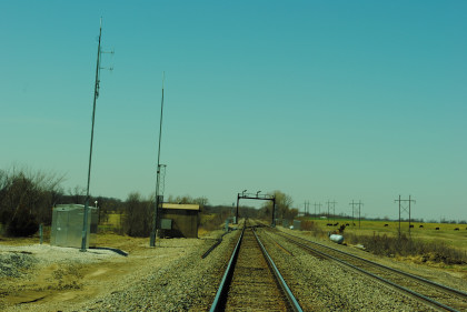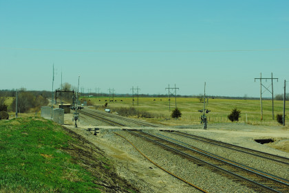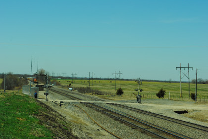 After having waffles for breakfast, I stopped at the Bank of La Plata ATM before meeting the group at 6:40 AM and soon John, Christy and I were off for Marceline where our first stop was the Pioneer Road grade crossing. We did not have long to wait.