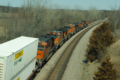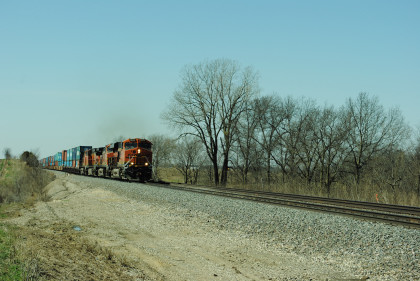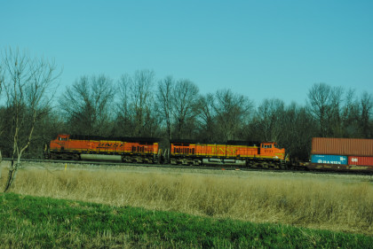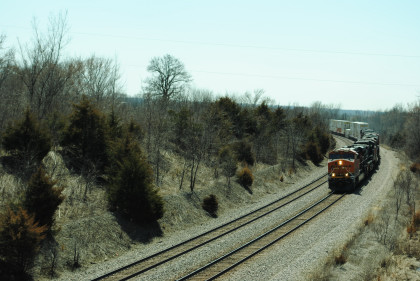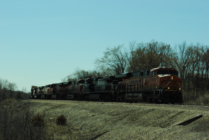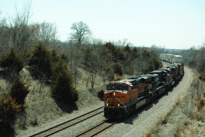 A BNSF DPU at Route E. We took that road out to Missouri Highway 11 south to Route BB to Whitham Avenue where we set up for pictures.