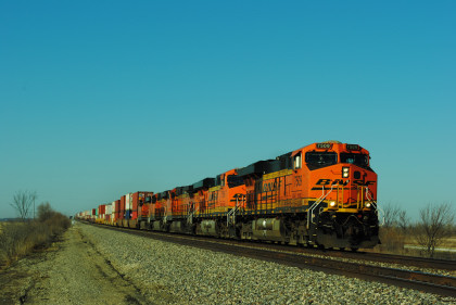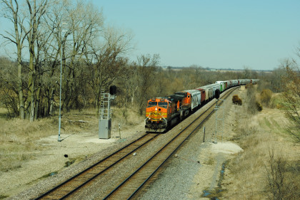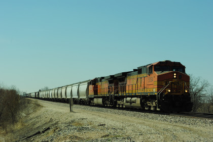BNSF 6952 East at the Long Branch Road grade crossing in West Marceline.