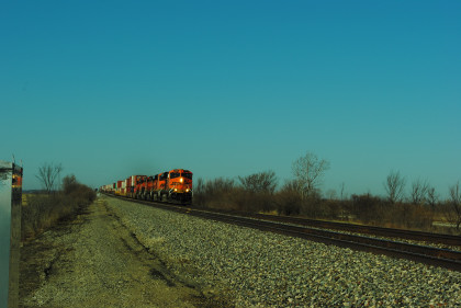 BNSF 6514 East. From here we went east to the Long Branch Road grade crossing.