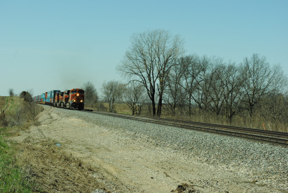 BNSF 5745 East at the Route 113 grade crossing also known as Porche Prairie Road. We relocated to the Newhall Road grade crossing.