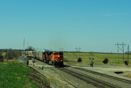 BNSF 6984 East at the Pioneer Road Crossing. From here we headed out west from Mendon.