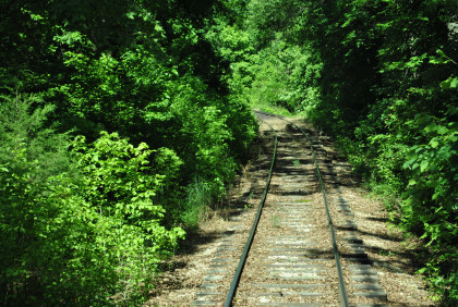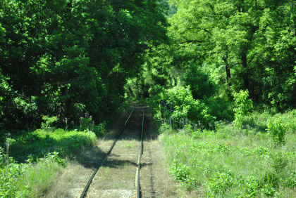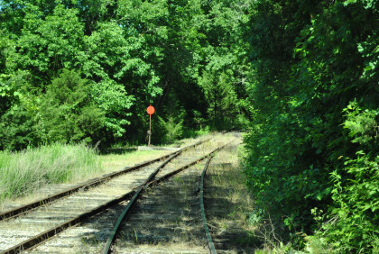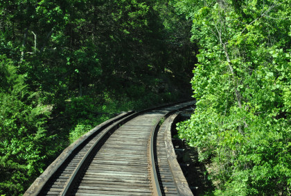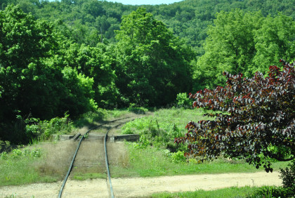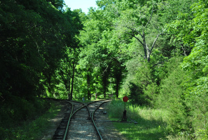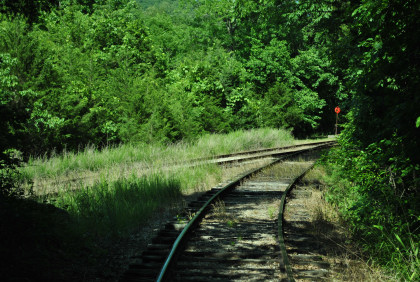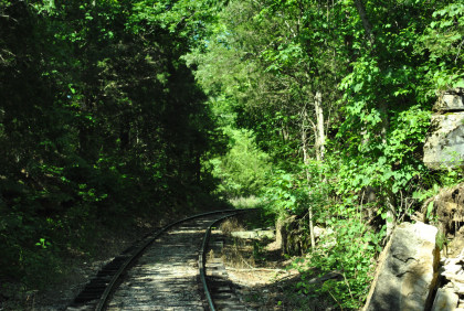 This is as far as we went. I relaxed on the trip back to Eureka Springs and once there, led the way to a photo line I made along the highway looking down at the tracks.