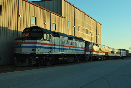 What appears to be a locomotive is actually a Non-Powered Control Unit, a former 3,000 horsepower F40PH rebuilt in 2011 without a prime mover, but with the ability to control an adjacent locomotive. Built for Amtrak in July 1988 by EMD, F40 406 was retired in 2001 and stored before being rebuilt by Amtrak's Beech Grove facility in Indiana. Today, 406 provides Head End Power (HEP) to power the onboard lights and HVAC systems, and to allow the train to operate in either direction without having to be turned around.