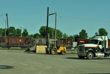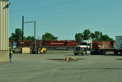 This is the exterior of the building. Due to high security we were not allowed to go inside but were informed that this is a transload facility which has many different customers. The railroad employees explained and answered questions and I protected the group from moving trucks and other equipment.