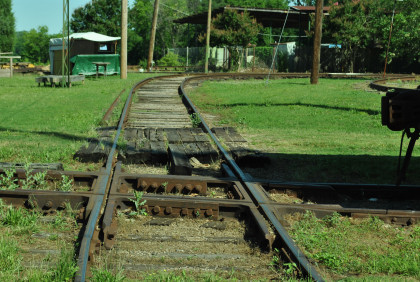 The railroad crossing at the museum.