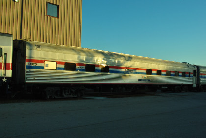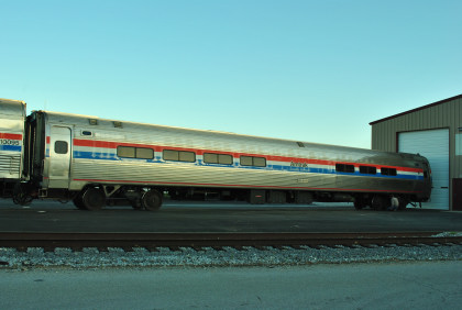 Display Car 10094 is also a former ATSF baggage car, 3547. Built in 1957 by Budd, it became Amtrak 1061 in 1971. It was also rebuilt in 1978 for HEP service, being assigned 1228. The car was stored at Beech Grove in 2009. It was renumbered 10094 when chosen for rebuilding for the 40th Anniversary Exhibit Train.