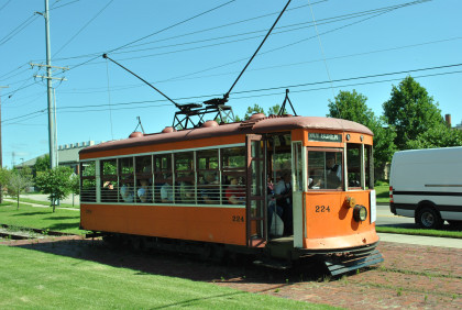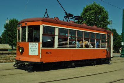Using parts from other cars obtained from around the country, 224 finally operated on Christmas Day of 1990. As the Museum's website states, "After completion of the necessary overhead wire system to carry the 600 volt DC current, car 224 officially began operating on May 19, 1991. The route ran 1,200 feet from the Fort Smith Trolley Museum to the Old Fort Museum (now called the Fort Smith Museum of History) and back again on abandoned Frisco Freight Systems spur track...More track was added in 1993, running from the museum to the entrance of Fort Smith National Cemetery. In 1997, the track was extended about a block in the other direction, from the Museum of History to a new stop on Garrison Avenue next to the Varsity Sports Grill. Since then, with the help of the City of Fort Smith, it has grown even further, reaching down Garrison Avenue to the front of Ross Pendergraft Park, which is northeast of the Fort Smith National Historic Site at the base of the Garrison Avenue Bridge. Future plans call for extensions to both ends of the trolley track. From Ross Pendergraft Park, it will continue west, turn north under the Garrison Avenue Bridge, and stop at Miss Laura's Visitors Center near the Arkansas River. On the other end, it will make stops at the Fort Smith Convention Center and Holiday Inn Civic Center on South 7th Street, and The Town Club on Garrison Avenue, for a total length of 1.5 miles of track."