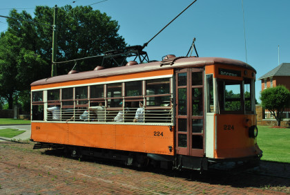 Fort Smith Light & Traction 224 is also a double-ended single truck, arched roof Birney car. Like 221, it was built by American in April 1926. Once used as the "Streetcar Cafe" in Ashdown, Arkansas, it is in operating condition.