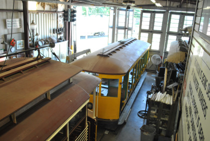 United States Air Force 44 ton switcher 1246 built by General Electric in January 1953. I went inside and boarded the trolley for the first trip of the day which starts in the car barn, where my first trip here in 2010 ended.