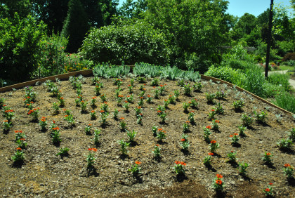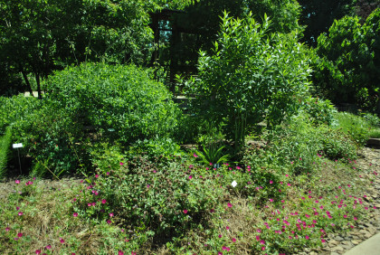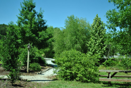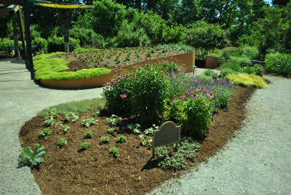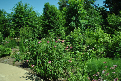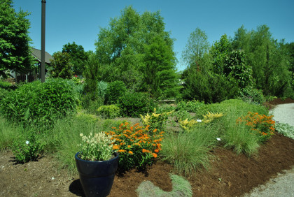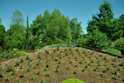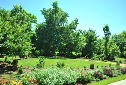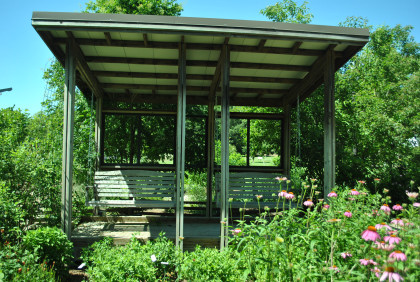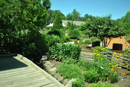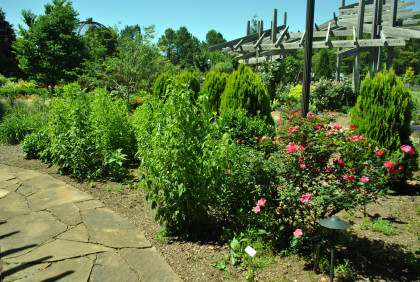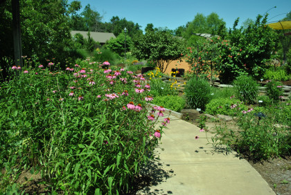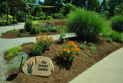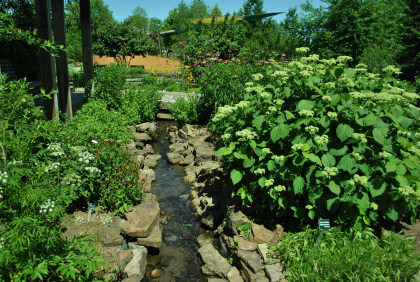 The Ozark Native Garden which features flora native to Arkansas with a wide variety of flowers, grasses and shrubs. A small native stream flows through the garden and there are two shaded "front porch" swings. This garden was designed by Lisa Netherland and Jo Carlole Haxel. The Northwest Arkansas Master Naturalists contribute to the upkeep and landscaping of this garden year-round.