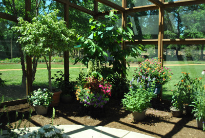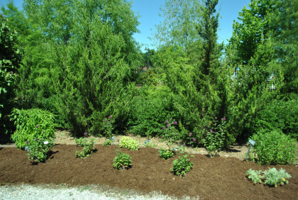 The Shade Garden which features a collection of shade-loving plants, including many that hold their foliage year-round. This garden was donated by the Carl Totemeier family to honor Carl for the contribution he made to the botanical garden and to memorialize his love for the project. Totemeier served as the garden's Volunteer Executive Director from 2001-2004 and was instrumental in the garden's development and planning. The Shade Garden was designed by Yvonne Kirby, a friend of the Totemeier family.