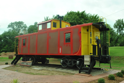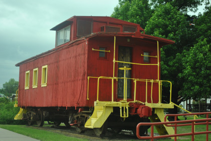 Frisco wooden caboose 1119 built by the railroad. It was acquired from an area family who had used the car as a guest house on their farm.