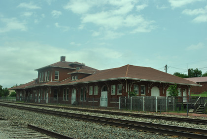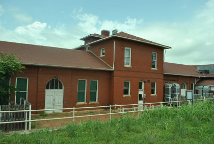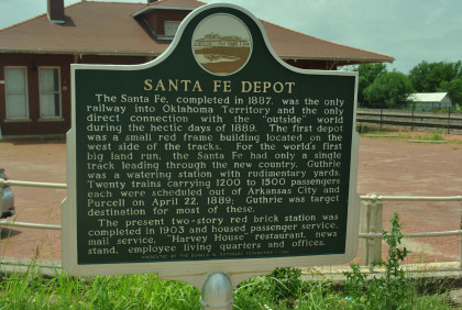 The Santa Fe Guthrie station and Harvey House built in 1887 and originally constructed as Guthrie Union Depot, used by the Santa Fe, Fort Smith & Western, and the Missouri- Kansas-Texas Railroads.