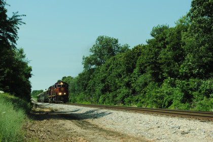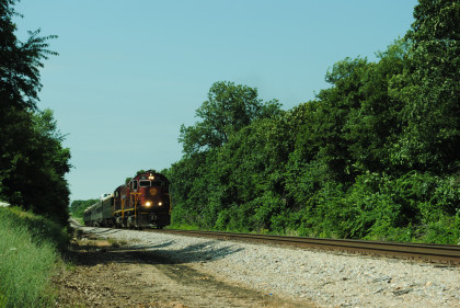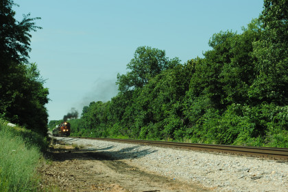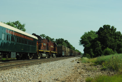 Photo runby of our train. We reboarded the entire train at my two doors of cars 105 and 106 and headed to Monett. Once we reached Purdy, I was on new rail mileage the rest of the way.