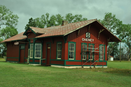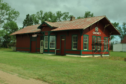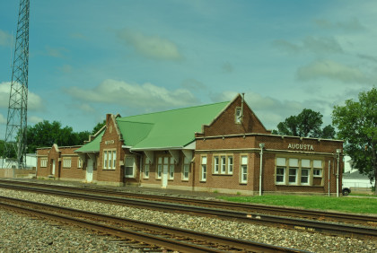 The Cheney Santa Fe station built in 1884. I drove out, locked the gate then called to thank them for letting me see the two unique stations they have saved. I then stopped for petrol in Augusta where there are also two stations.