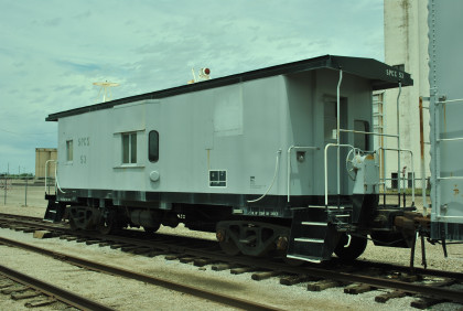 Southern Pacific caboose 53 built by International Car and used on a Qwest cable construction train.