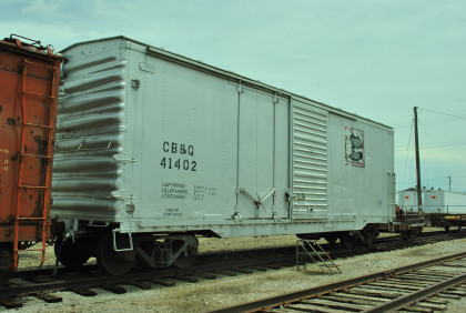Chicago, Burlington and Quincy double-door box car 41402 built by the railroad in 1949.