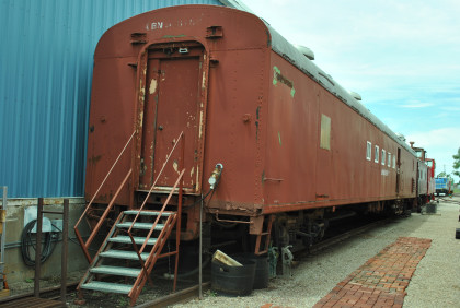Lounge car "Wanda Lee", ex. Amtrak 3100, nee United States Army medical service car 89526 built by St. Louis Car Company in 1954. It was rebuilt by Amtrak into a bar-lounge car 3406 "Le Pub" to be used on the Montrealer. When the pub and dance floor were removed, Amtrak converted it into a cafe-lounge car. After being moved to the museum, the car was refurbished and repainted, then named in honor of our director's late wife, Wanda Lee Campbell.