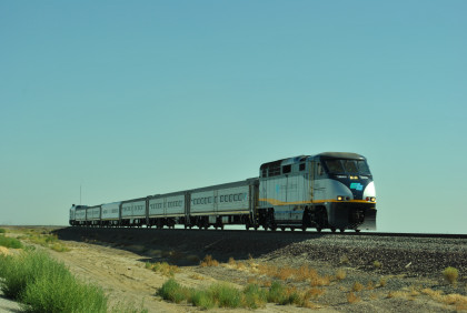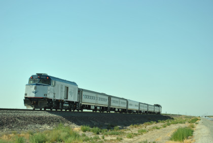 North of Wasco, I caught San Joaquin train 717 with the low-level train set. From here we went into Bakersfield and checked into the Clarion Inn, had dinner at the Hungry Hunter then watched some television while I wrote the travelogue before we called it a night.